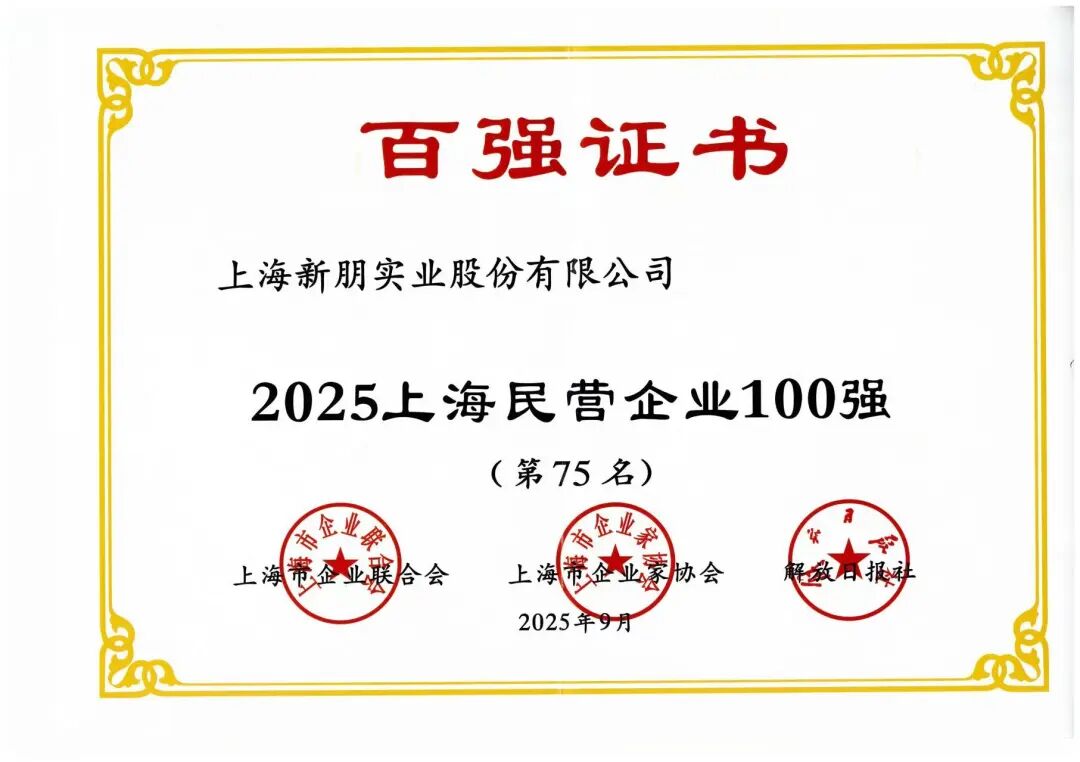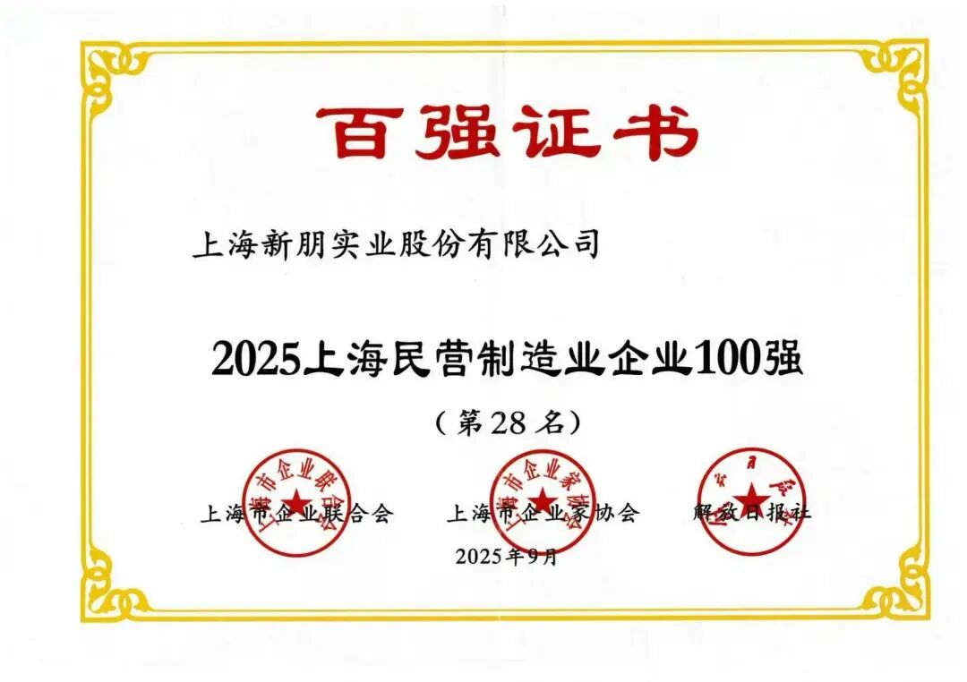 近日,2025年上海百强企业榜单正式发布。新朋股份(002328)凭借稳健的经营业绩和卓越的制造实力,再次荣膺“上海民营企业100强”、“上海制造业企业100强” 和“上海民营制造业企业100强” 三项殊荣!
